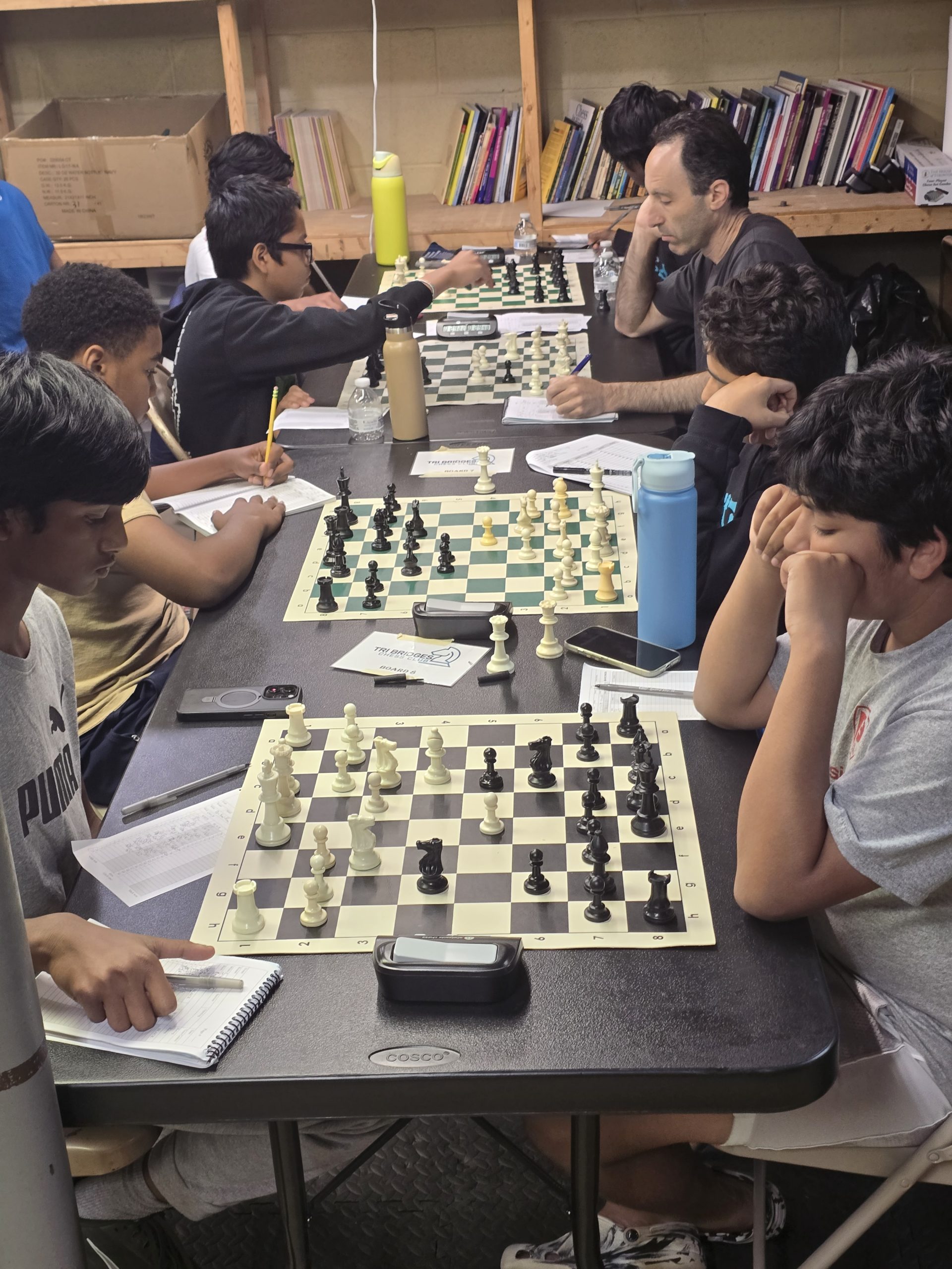 Founded on the idea of the traditional community chess club (e.g. Marshall in New York City, Mechanics Institute in San Francisco), Tri-Bridges strives to be of use to all chess players in the community. For some, this means teaching how to move the pieces and getting kids excited about the game. For others this means teaching them about concepts like forks, pins, and skewers, so they can do better in tournaments. We have various guest lecturers and lectures on subjects ranging from attack to zugzwang. Finally, some need one on one lessons and we have space for people to take private lessons if the main area is being used.